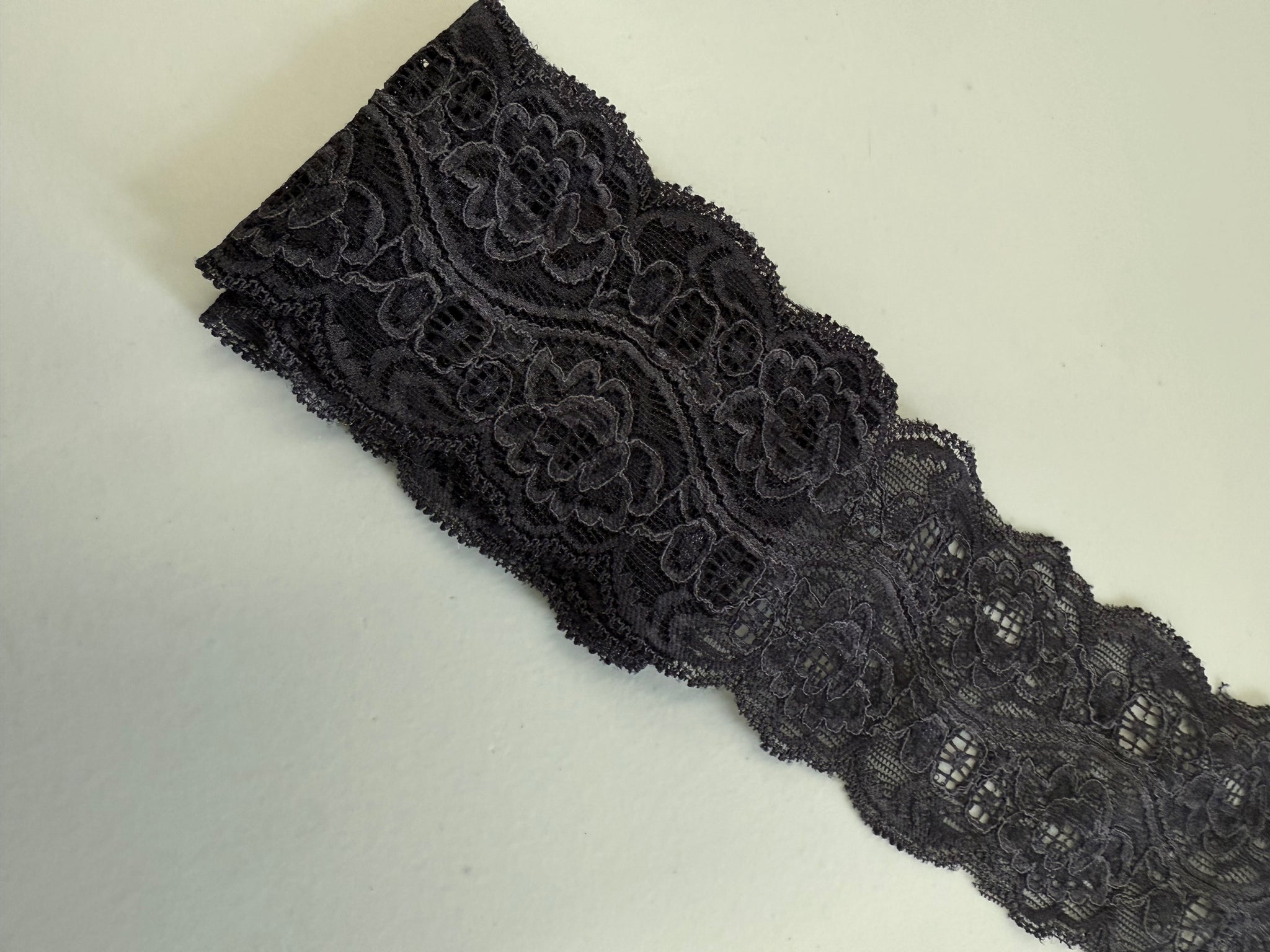 This stretch lace is great edging for panties, shapewear, slips, bras and camisoles. It has great stretch at about 60% and great recovery. It can be dyed to match our standard fabric colors. Please order by the yard.