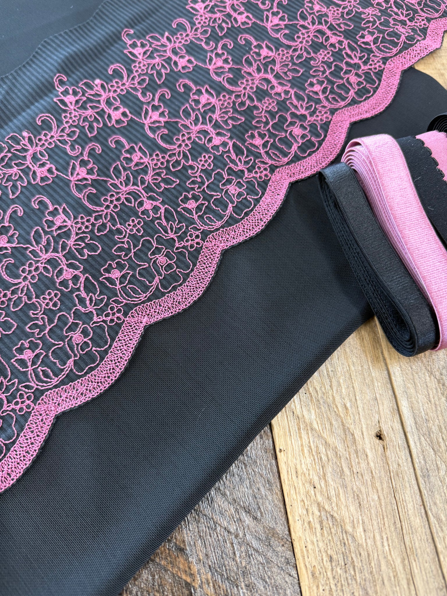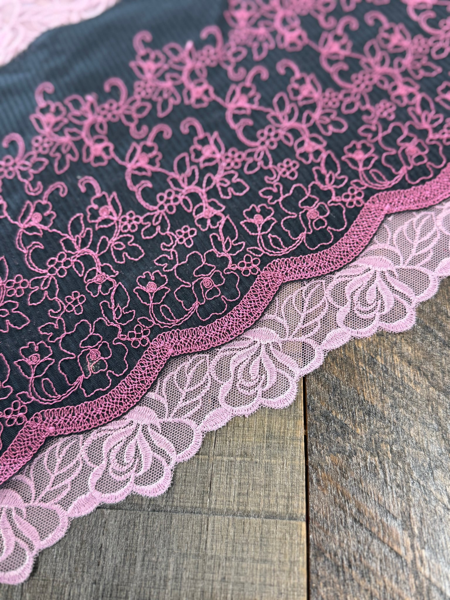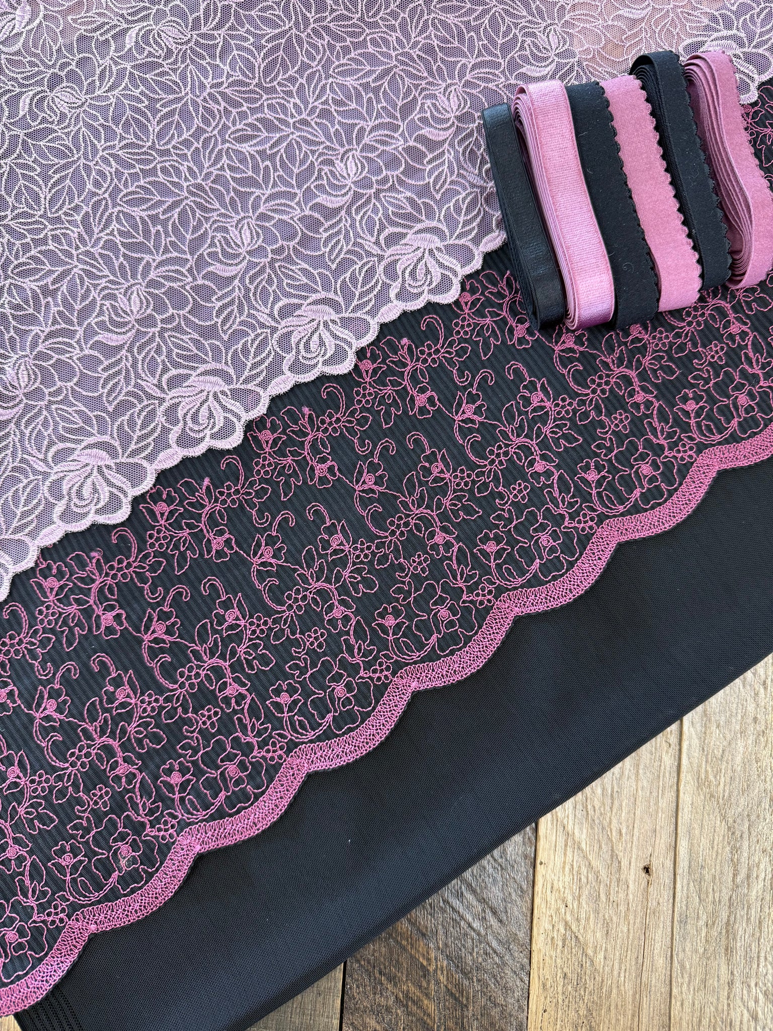 "Blackberry Knit" 6" Stretch Lace has a stretch that will remind you of your favorite sweater. The floral design is supported by our softest purple Blackberry Cream and a perfect match for this month's Tulle Lace "Berry Blush", a 9.5" floral that will partner with any aesthetic. Choose your option for these two laces, individual or create a capsule with 1yard of each lace. Blackberry Knit will can enhance your next pajamas or loungewear with our Midnight Modal and Intimate Bouquet LaceWear.