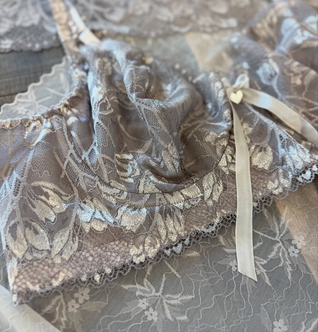 Silver Garden Lace Kit is being released as a January 2026 special, after spending all year as a Club Member Exclusive. If you missed it, now is your time to grab yours. Silver Garden is an 8" wide stretch lace supported by Dove, as well as any bold color you'd like to contrast with this neutral beauty. You can also create a silk bra with Smoke Stretch Silk Satin.
